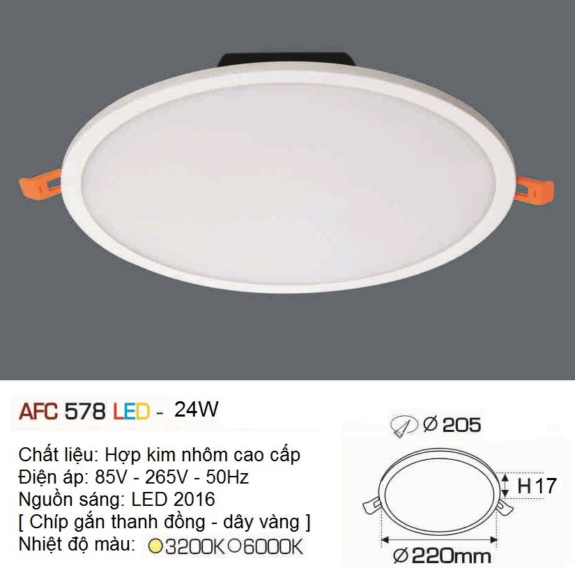 Kích thước: Ø 220 x H 17 mm, Khoét lỗ: Ø 205 mm