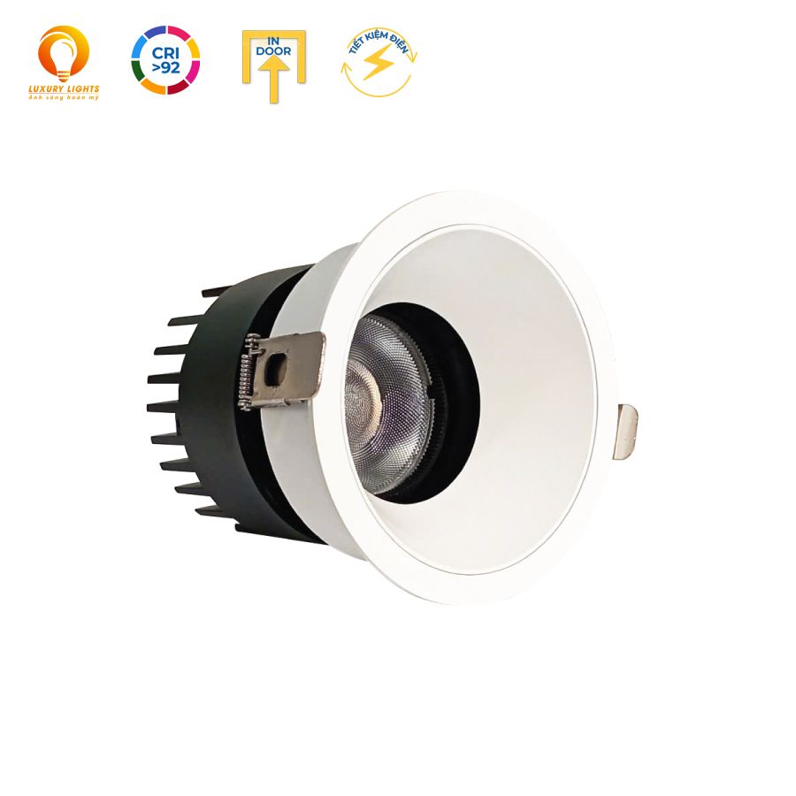 • Đèn âm trần spotlight có hiệu suất quang lớn lên đến 120Lm/W, đảm bảo ánh sáng mạnh mẽ và hiệu quả. Driver Lifud đảm bảo hiệu suất ổn định và độ an toàn cao.