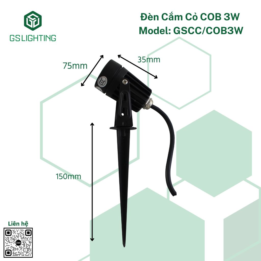 (Kích Thước Đèn Cắm Cỏ COB 3W)