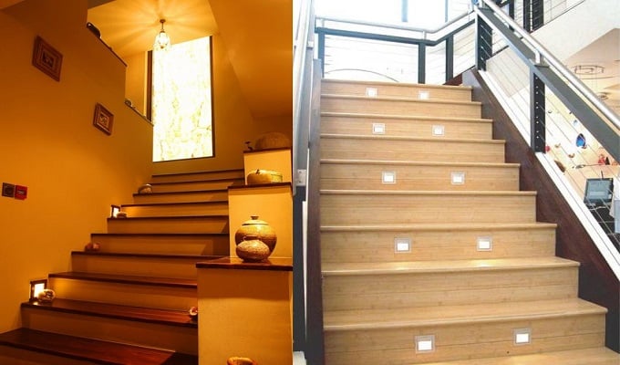Đèn led chân tường, chân cầu thang được lắp âm tường khu vực chân cầu thang, nơi khá ẩm nên khi chọn đèn cần yêu cầu loại chất lượng cao. Tránh phải thay đèn nhiều lần rất tốn kém.