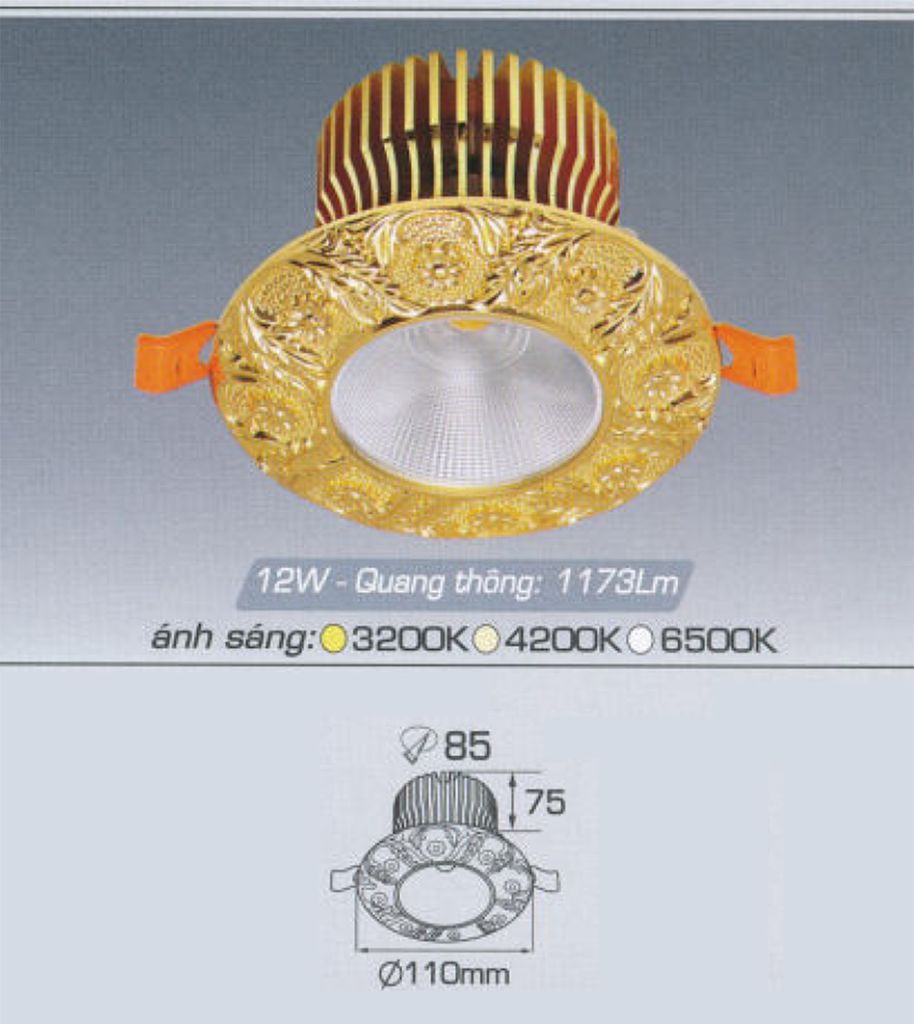 ĐK lỗ khoét trần : 85mm