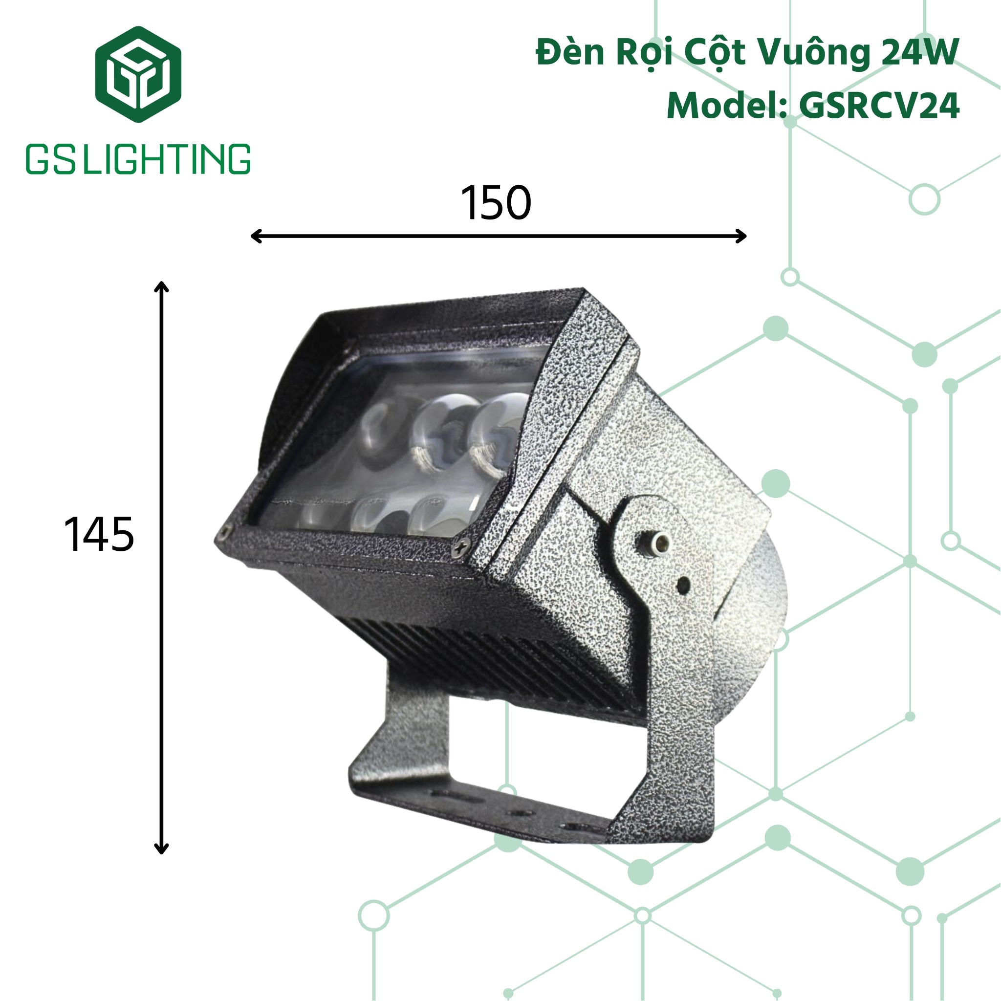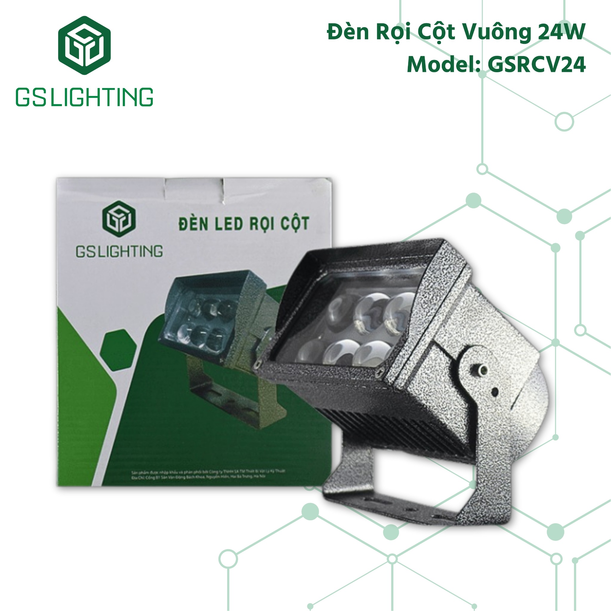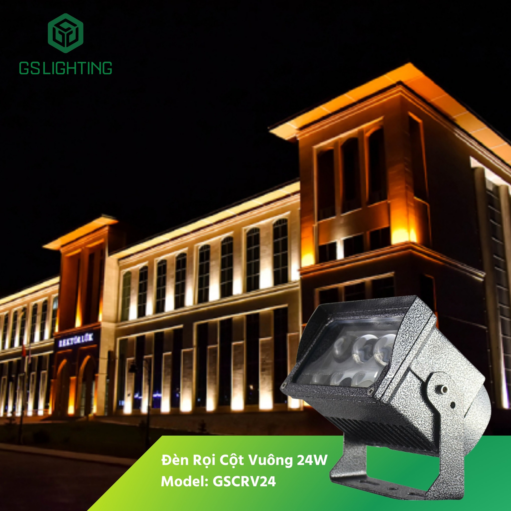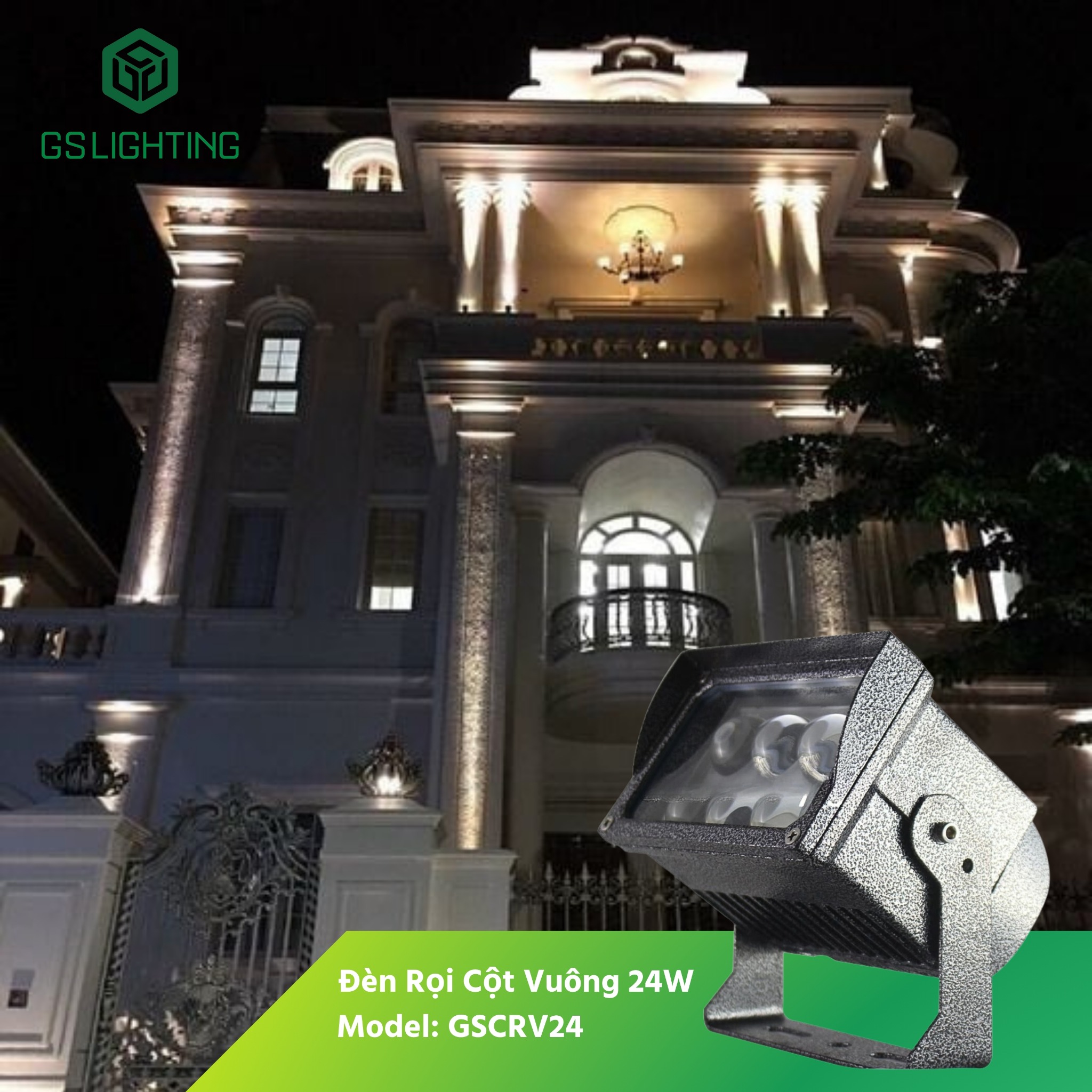 Tên sản phẩm: Đèn Rọi Cột Ngoài Trời 24W - Đèn Rọi Cột Vuông Gs lighting